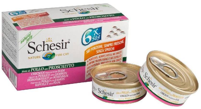 Дополнительный влажный рацион супер премиум класса для кошек. Цыпленок с ветчиной в желе. Вес 50г, 6 штук в упаковке.