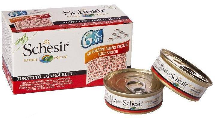 Итальянские консервы для кошек Schesir тунец с мясом креветки предназначены для кошек любого возраста и для всех периодов жизни животного, беременность, постоперационный период.