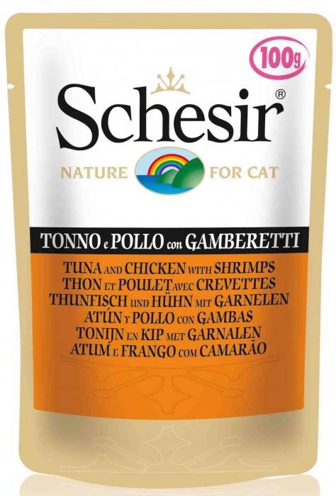 Непревзойденное сочетание мяса тунца, курицы и креветки привлечет внимание вашего питомца, как только вы вскроете удобную пауч-упаковку с влажным кормом Shesir.