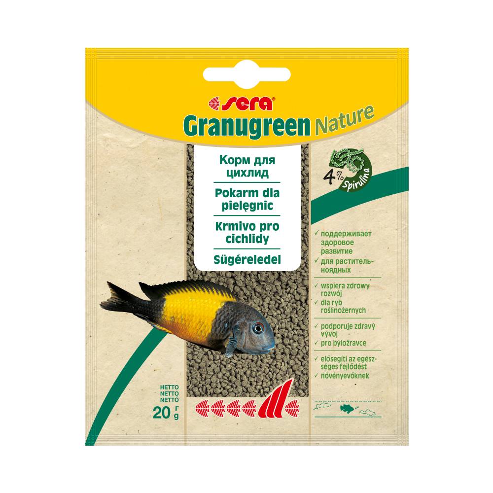 Sera Granugreen Nature - это основной корм, состоящий из мягко изготовленных гранул без красителей и консервантов для небольших цихлид, которые в основном питаются растениями и перифитоном. Это многие восточноафриканские виды цихлид. Высококачественные растительные компоненты, такие как водоросли спирулины и шпинат с большим количеством натуральных каротиноидов, способствуют оптимальному развитию цвета. Сбалансированный состав способствует интенсивному развитию и здоровому пищеварению. Медленно тонущие гранулы хорошо сохраняют свою форму и не загрязняют воду.
