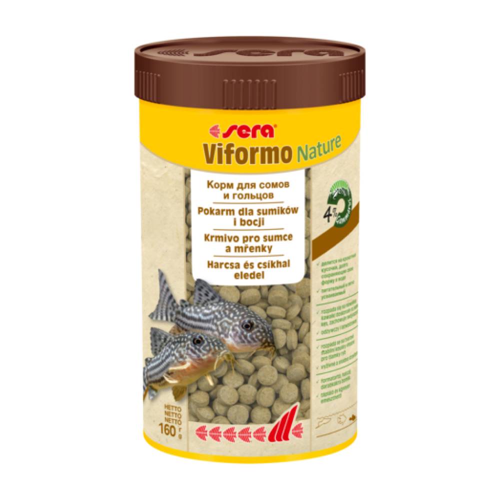 Sera Viformo Nature - корм для сомов, не содержащий красителей и консервантов, в форме таблеток, произведенных путем бережной обработки сырья, для всех сомов и других, ориентированных на придонное кормление рыб, которые ищут себе пищу на грунте.