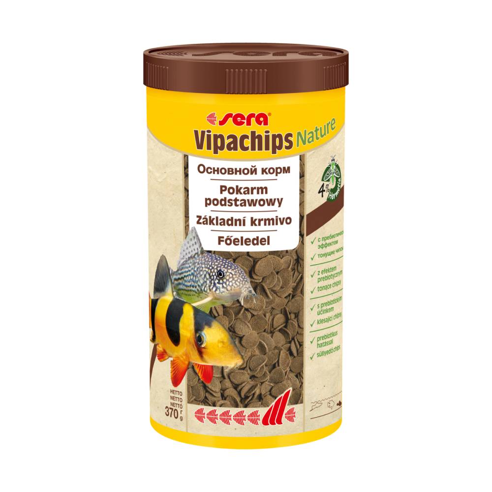 Sera Vipachips Nature - это основной корм, состоящий из быстро тонущих чипсов без красителей и консервантов для всех рыб, которые питаются на дне. Он содержит муку из насекомых в качестве высококачественного источника белка, являющегося восполняемым ресурсом. Сбалансированный состав с натуральными ингредиентами и пребиотиками позволяет питаться в условиях, близких к природным, что способствует здоровому росту и интенсивному развитию. Быстро тонущие чипсы сохраняют свою форму в течение длительного времени и, таким образом, оптимально удовлетворяют привычки кормления донной рыбы, не загрязняя воду.