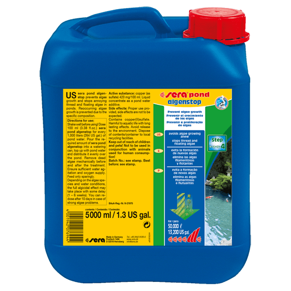 Sera Pond Algen Stop - средство для воды, предназначенное для контроля распространения плавающих и нитчатых водорослей с эффективностью до 6 недель.
