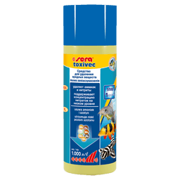 Sera Toxivec, содержащие формулу QuickClean, устраняет опасные загрязнители, амиак, нитриты, агрессивный хлор из водопроводной воды, угрожающей полезным бактериям. Средство также предотвращает рост нежелательных водорослей.