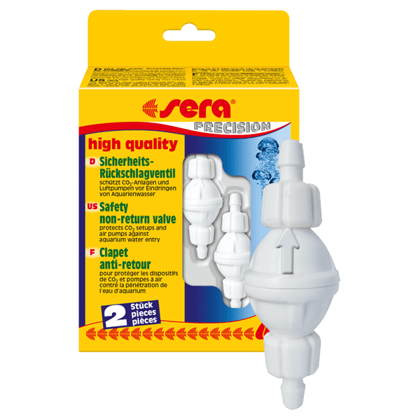 Sera - высококачественный обратный клапан предохраняет систему от обратного тока воды, что, в свою очередь, защищает воздушные компрессоры и CO2 оборудования. Удобен при разборке и чистки.