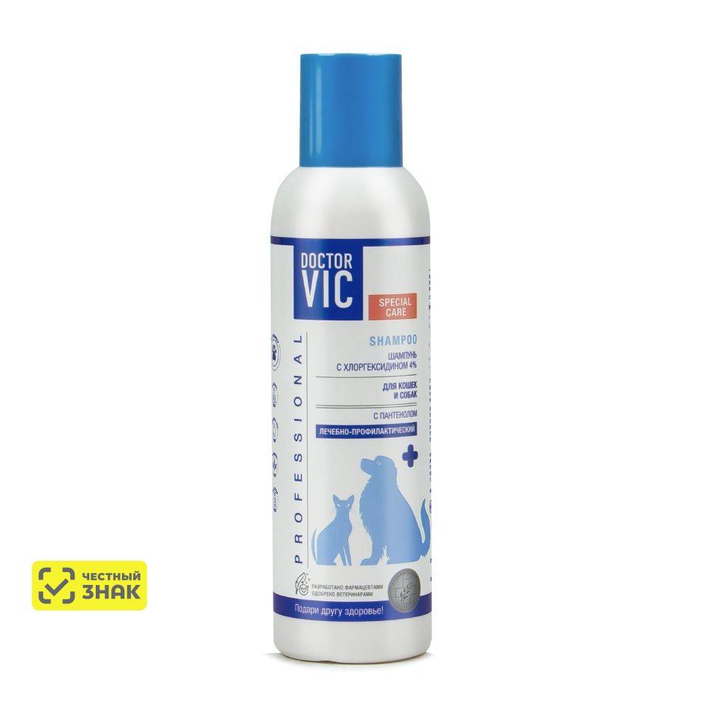 Вик – здоровье животных Шампунь противомикробный с хлоргексидином 4% для собак и кошек, 150 мл