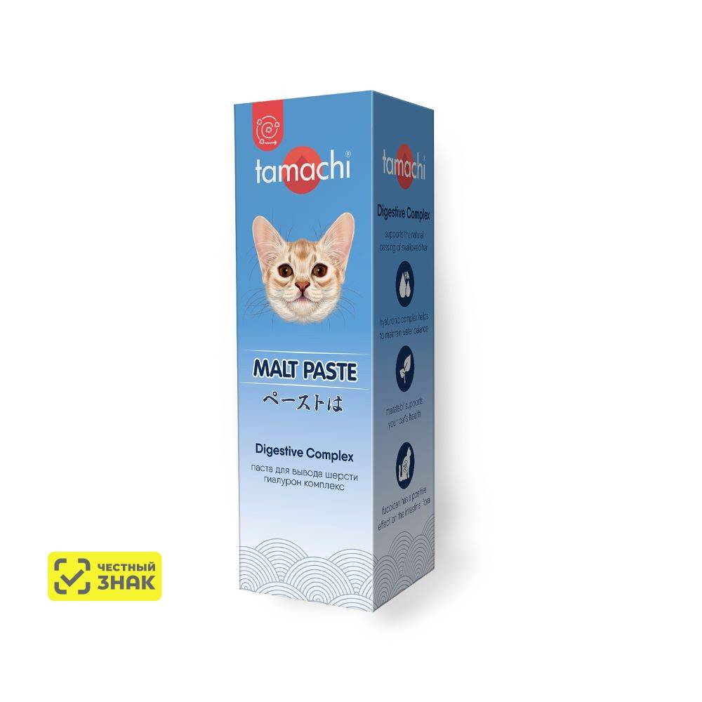 Тамачи Мальт-пасту применяют для вывода волосяных комков из желудочно-кишечного тракта, профилактики их образования и избавления от рвоты и запоров. Уникальная формула активных компонентов: гиалуроновый комплекс способствует поддержанию нормального водного баланса в организме, является частью внеклеточного матрикса, обеспечивающего механическую поддержку клеток и транспорта химических веществ, мататаби улучшает аппетит, оказывает общеукрепляющее и болеутоляющее действие, фукоидан оказывает позитивное воздействие на кишечную флору и нормализуют функции желудочно-кишечного тракта.