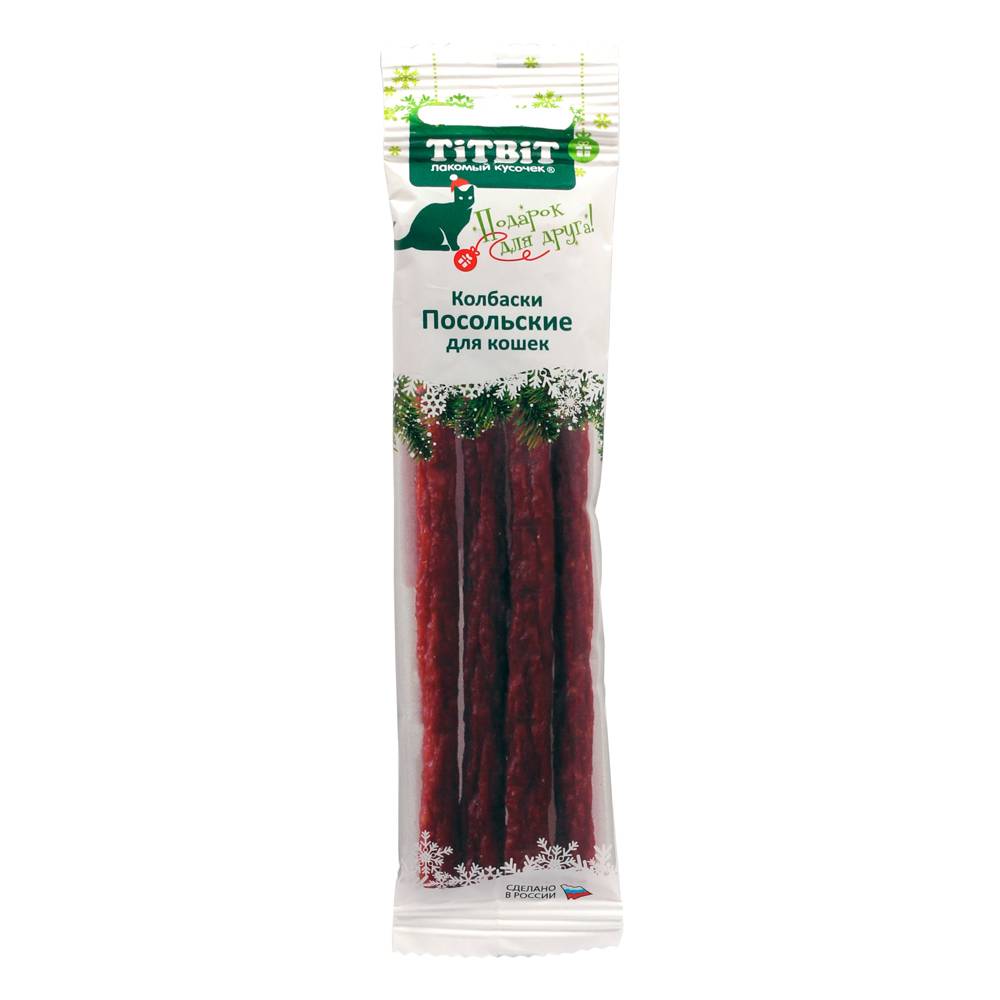 TiTBiT Лакомство Новогодняя коллекция Колбаски Посольские для кошек, 20 гр.
