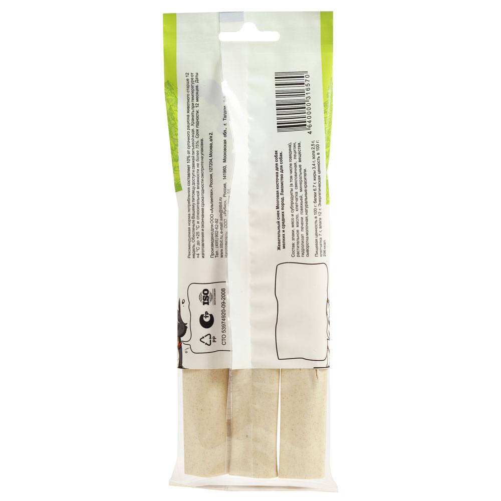 Мозговая косточка - жевательное лакомство для поощрения и ухода за зубами и деснами собак. Благодаря комбинированной текстуре и полезным добавкам использование снека позволит поддерживать здоровье ротовой полости животного в отличном состоянии: