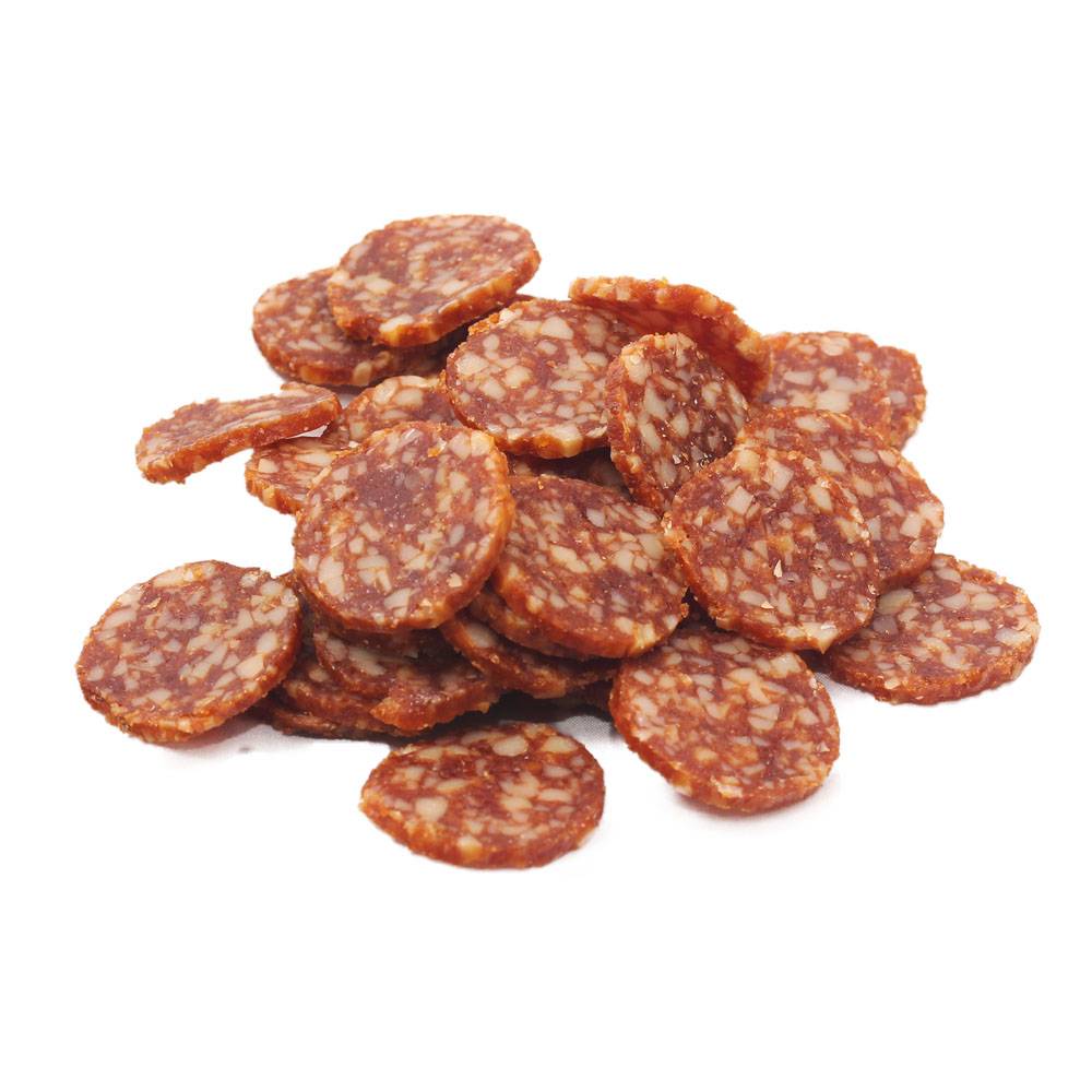 кусочки как настоящей колбасы внешне,удобно брать на прогулку как лакомство,бигль ест с удовольствием.Комментарий