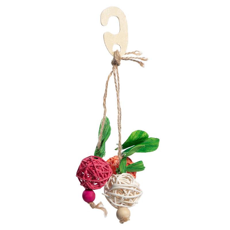 Игрушка-подвеска для птиц "Веселый огород" в виде трех плетеных шариков, украшенных кукурузными листьями.Преимущества: