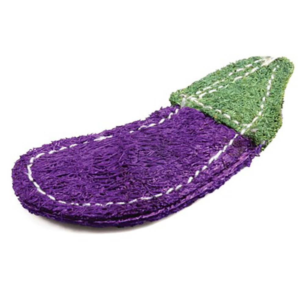Игрушка для мелких животных из люфы «Баклажан». Во время игры происходит мягкая механическая очистка зубных поверхностей, поскольку крупноволокнистая структура игрушек идеально подходит для снятия зубного налета. При регулярном использовании они позволяют поддерживать здоровье полости рта питомца.
