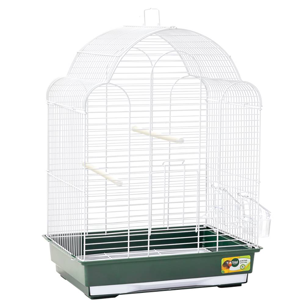 Оригинальная клетка для птиц с фигурной крышей — полезный аксессуар для владельцев пернатых питомцев небольшого размера.