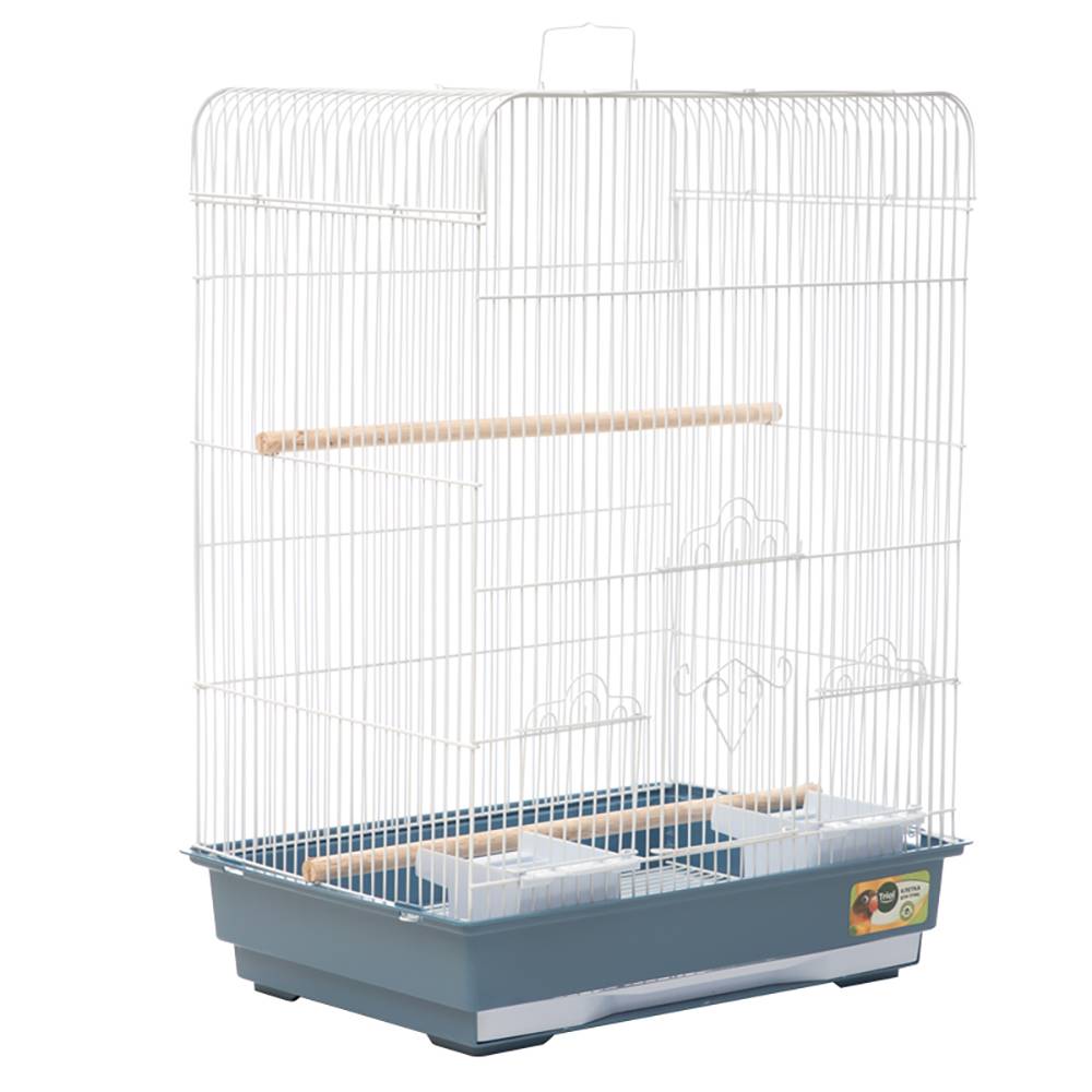 Клетка оборудована удобной ручкой для переноски и специальным пластиковым наружным поддоном, облегчающим процесс уборки.