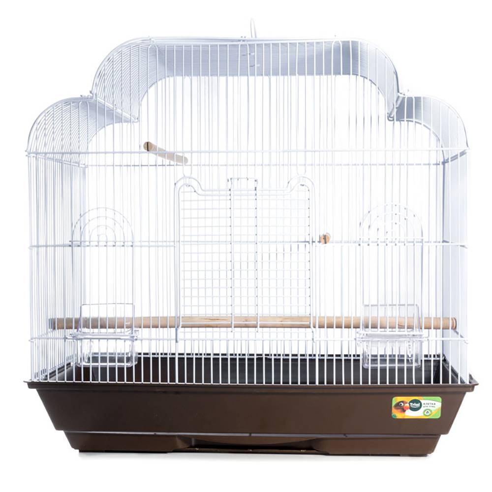 В комплектацию изделия входят 2 внутренние кормушки и 3 деревянные жердочки. Клетка оборудована удобной ручкой для переноски и специальным пластиковым поддоном, облегчающим процесс уборки.