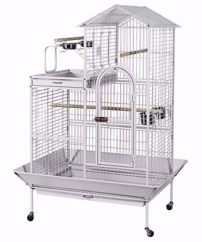 Комплектация: 4 металлических мисок-кормушек с устройством "АНТИСБРОС", решетка на дне, фартук (для защиты от мусора), 3 жердочки, оснащена удобными колесами для перемещения, удобный замок на дверце клетки с устройством предотвращающим открытие дверцы детьми, попугаями и пр.