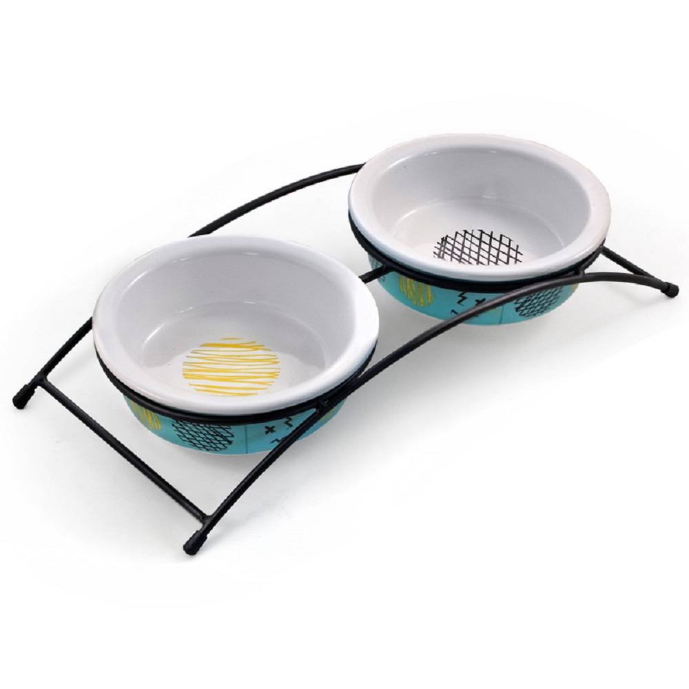 Этот функциональный комплект из двух универсальных круглых мисок на подставке выполнен из керамики высокого качества и отлично подходит для кошек и собак мелких пород. Такие миски идеальны как для воды, так и для корма разной консистенции. Изделие комфортно для питомца и легко моется под струей проточной воды с использованием моющих бытовых средств. А эффектный дизайн стилизованной под ковку подставки позволит ей стать украшением любого интерьера.