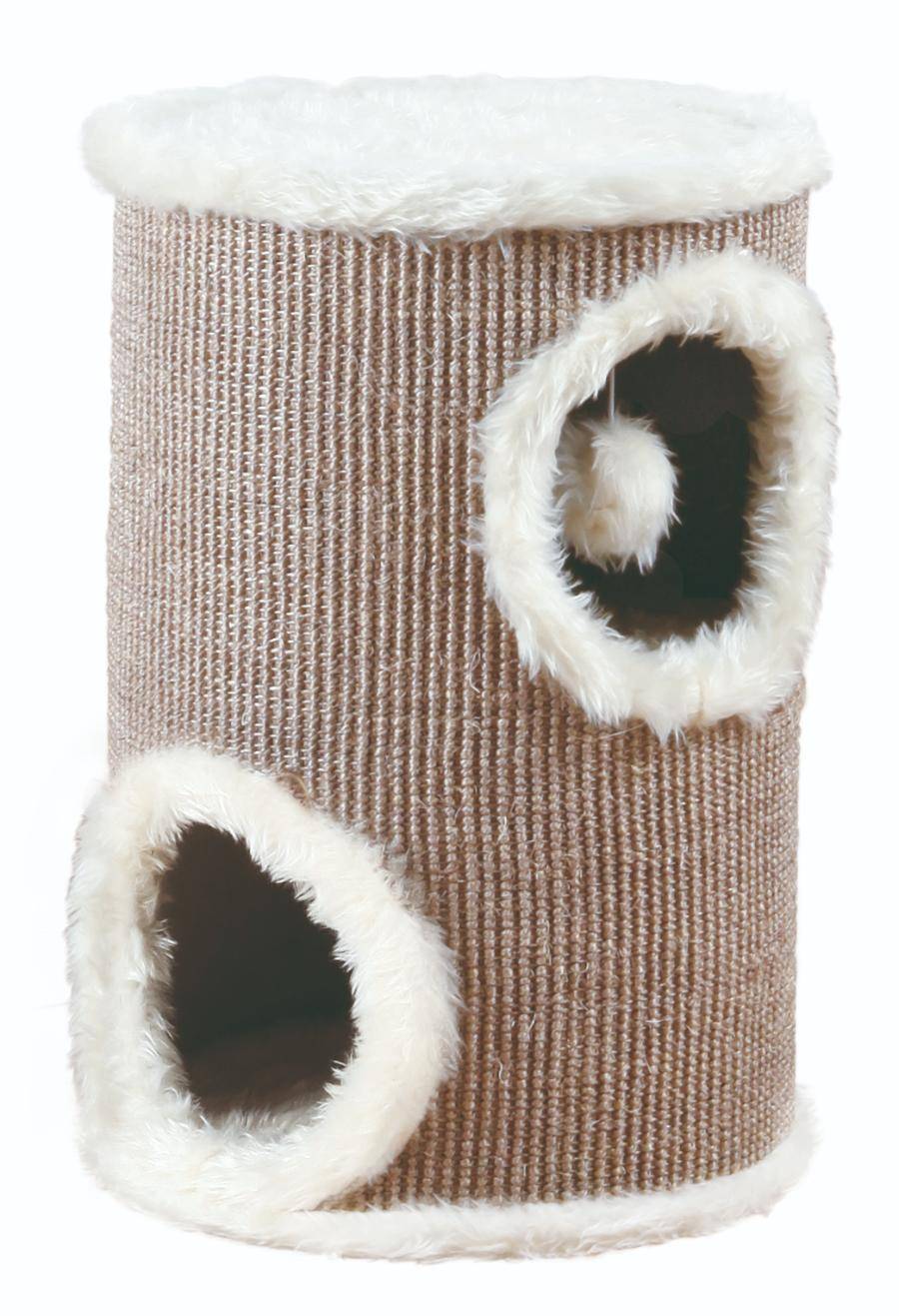 Домик — когтеточка Edorado круглый с двойным домиком, бежевый/белый, 33х33х50 см Преимущества: плюш с длинным ворсом/сизаль 2 яруса с мягкой платформой с игрушкой на верёвочке цвет: коричневый/кремовый вес (упак.): 5 кг