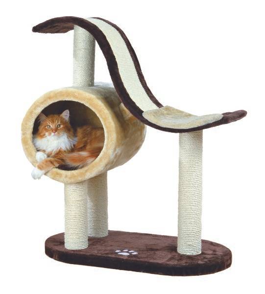 Дом — когтеточка Nerja с площадкой-волной, бежевый/коричневый, 41х77х99 см Преимущества: Плюшевый домик с сизалевыми столбиками и двумя лежаками. Диаметр столбика ø 9 см Материал: плюш/сизаль Столбики: сизаль 2 лежака: стираются вручную Высота 99 см, основание 71 х 41 см