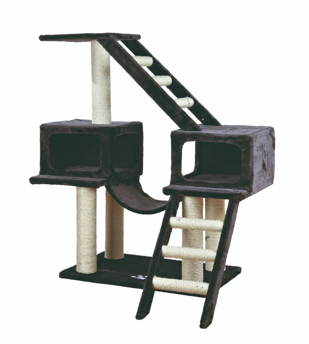 - Плюшевый игровой комплекс для кошки может использоваться в качестве места отдыха для животного, прекрасно впишется в любой интерьер квартиры и защитит мягкую мебель, обои и ковры от естественных потребностей кошки "точить" когти.