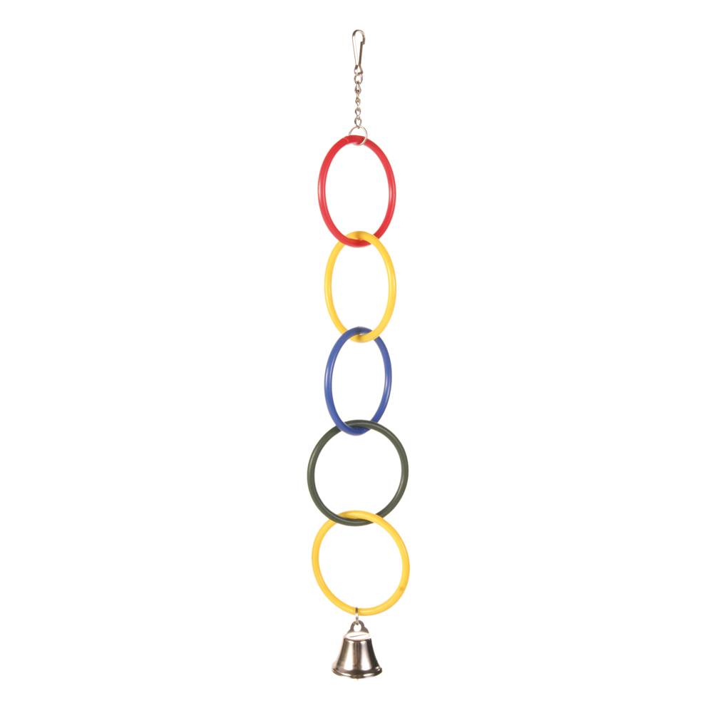 Чтобы разнообразить жизнь вашей домашней птички, сделать ее более веселой, компания Трикси разработала забавную игрушку в виде разноцветных колец, соединенных между собой, с колокольчиком, прикрепленным снизу. Данное изделие сделает будние дни животного красочнее и насыщеннее. Изготовлена игрушка из пластмассы.