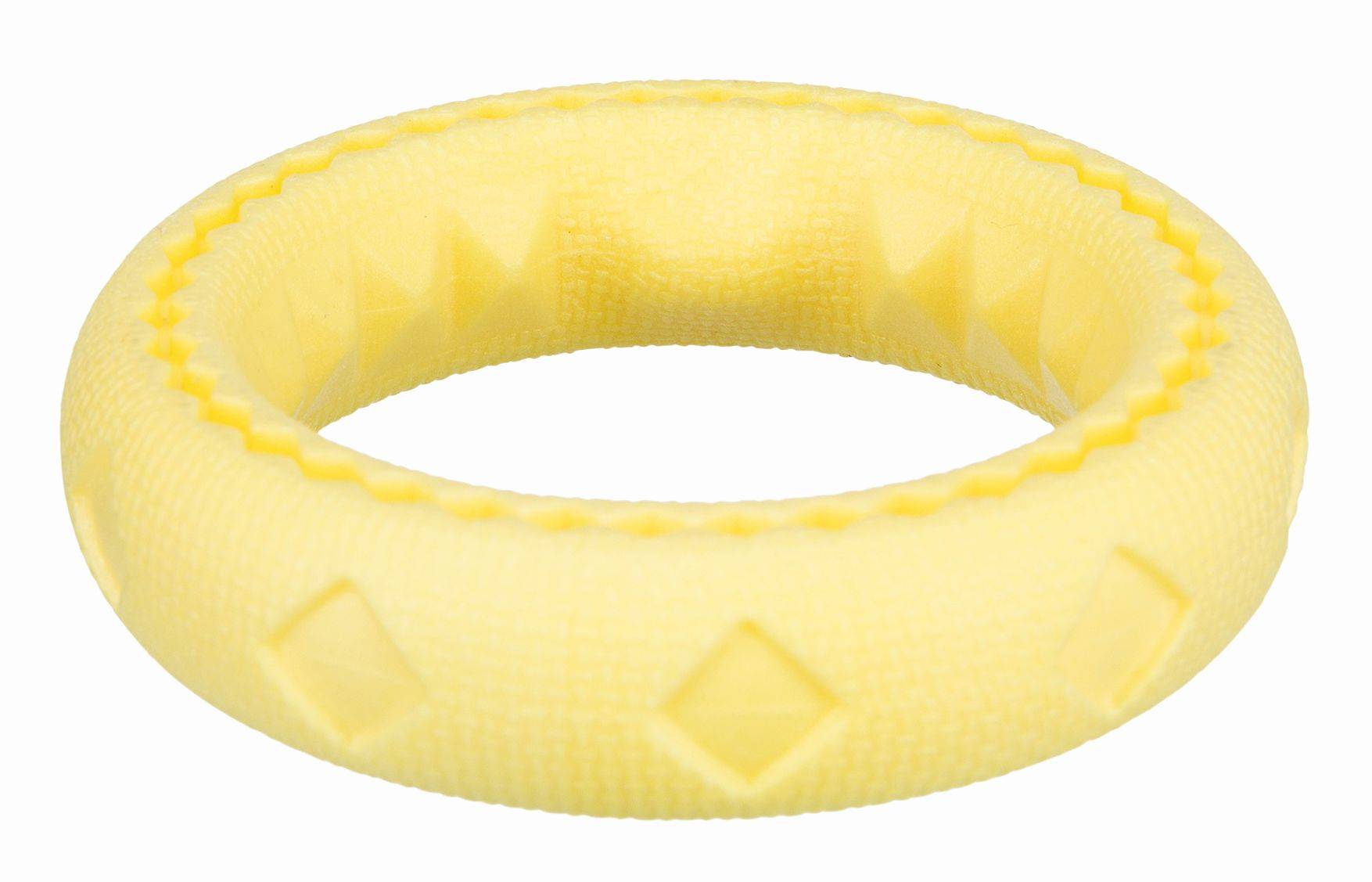 Плавающее игровое кольцо из износостойкого прочного материала - термопластичной резины. Кольцо послужит отличной игрушкой для маленьких собак. Яркий цвет позволяет собаки легко видеть игрушку на поверхности воды.