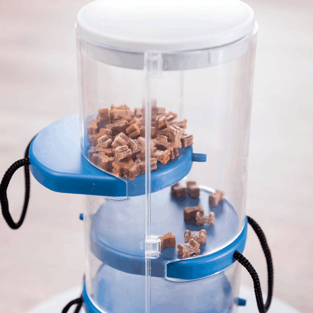 - В игрушке стойка с 3 заслонками и 3 дополнительных конуса для лакомств.