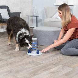 - Чтобы получить лакомство, собака должна сместить все заслонки в правильной последовательности.