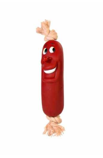 Игрушка для собак сарделька на веревке 11 см.