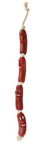 Игрушка для собак сардельки на веревке с ручкой 50 см.