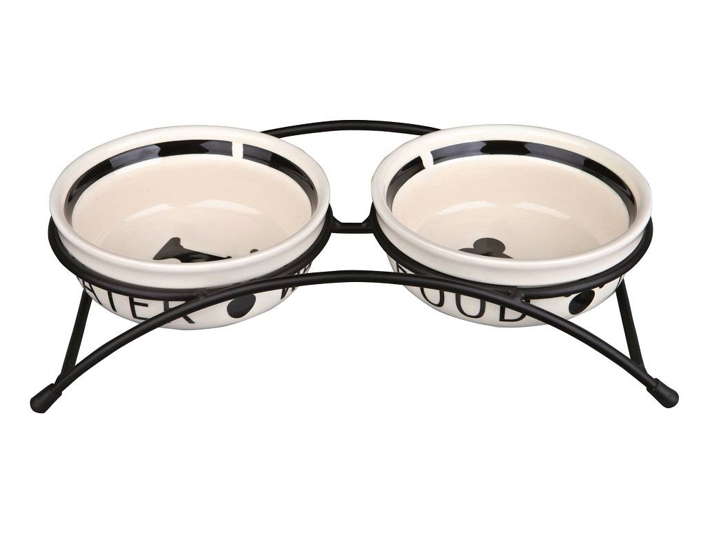Trixie Миски керамические на подставке для кошек, 2х250 мл, 13 см, бело-черный