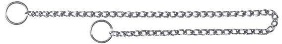 - Длина такой цепочки должна быть примерно такой, чтобы у собаки при надевании удавки проходила голова, но только не слишком свободно, чтобы при наклоне головы удавка не слетела с собаки самопроизвольно.