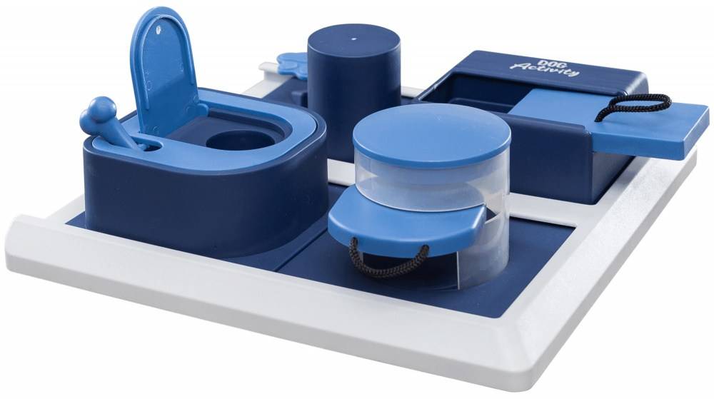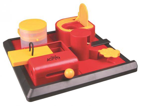- Для начала, дайте собаке познакомиться с различными элементами игры. Для этого не обязательно закреплять элементы на основании. Чтобы обеспечить надёжную работу всех элементов, используйте только сухие лакомства.
