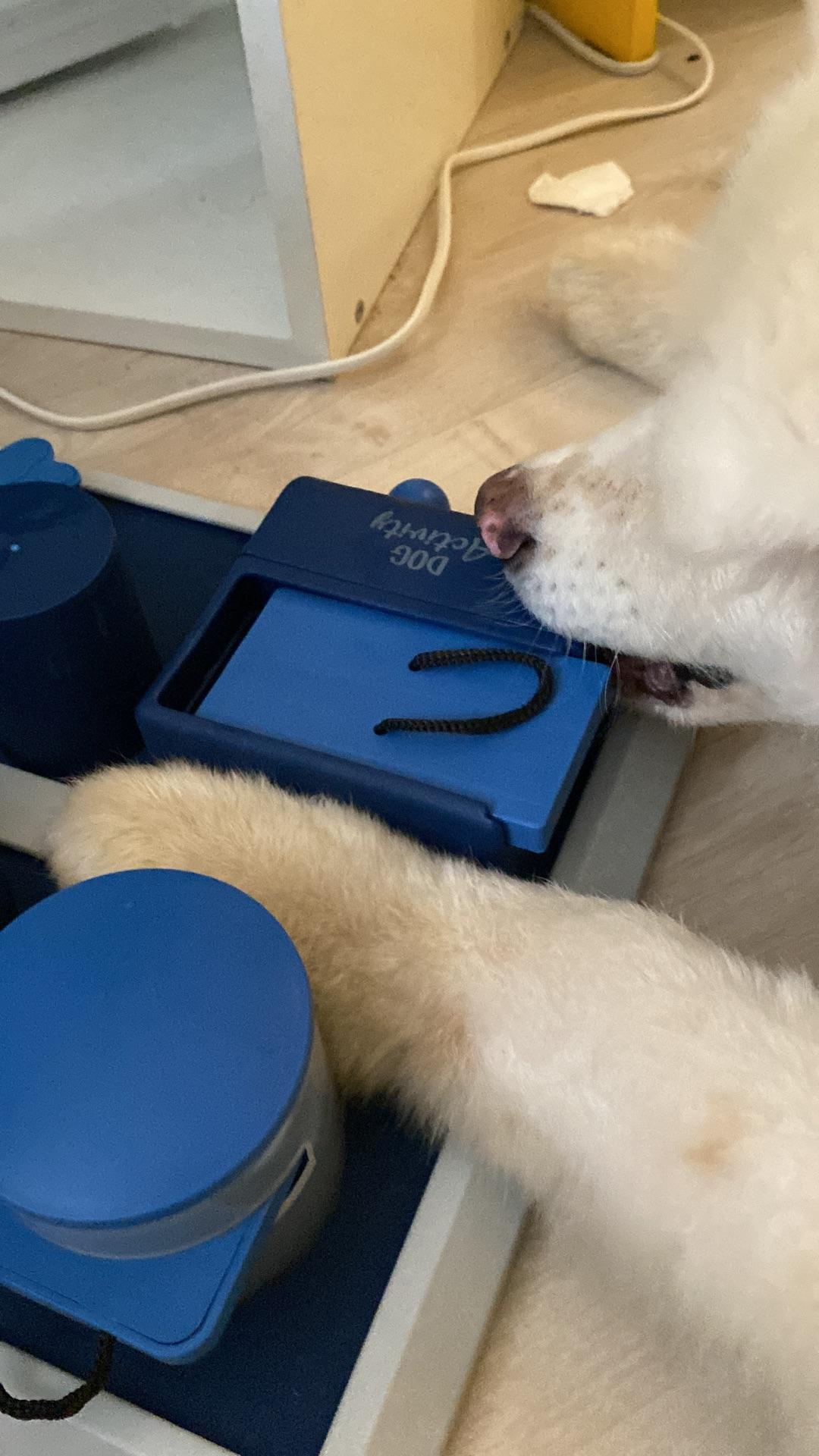 - Положите лакомство на ящик и подайте команду «Играть!». Покажите как тянуть ящик за петлю. Хвалите собаку. Повторяйте упражнение и увеличивайте уровень сложности, задвигая ящик глубже.