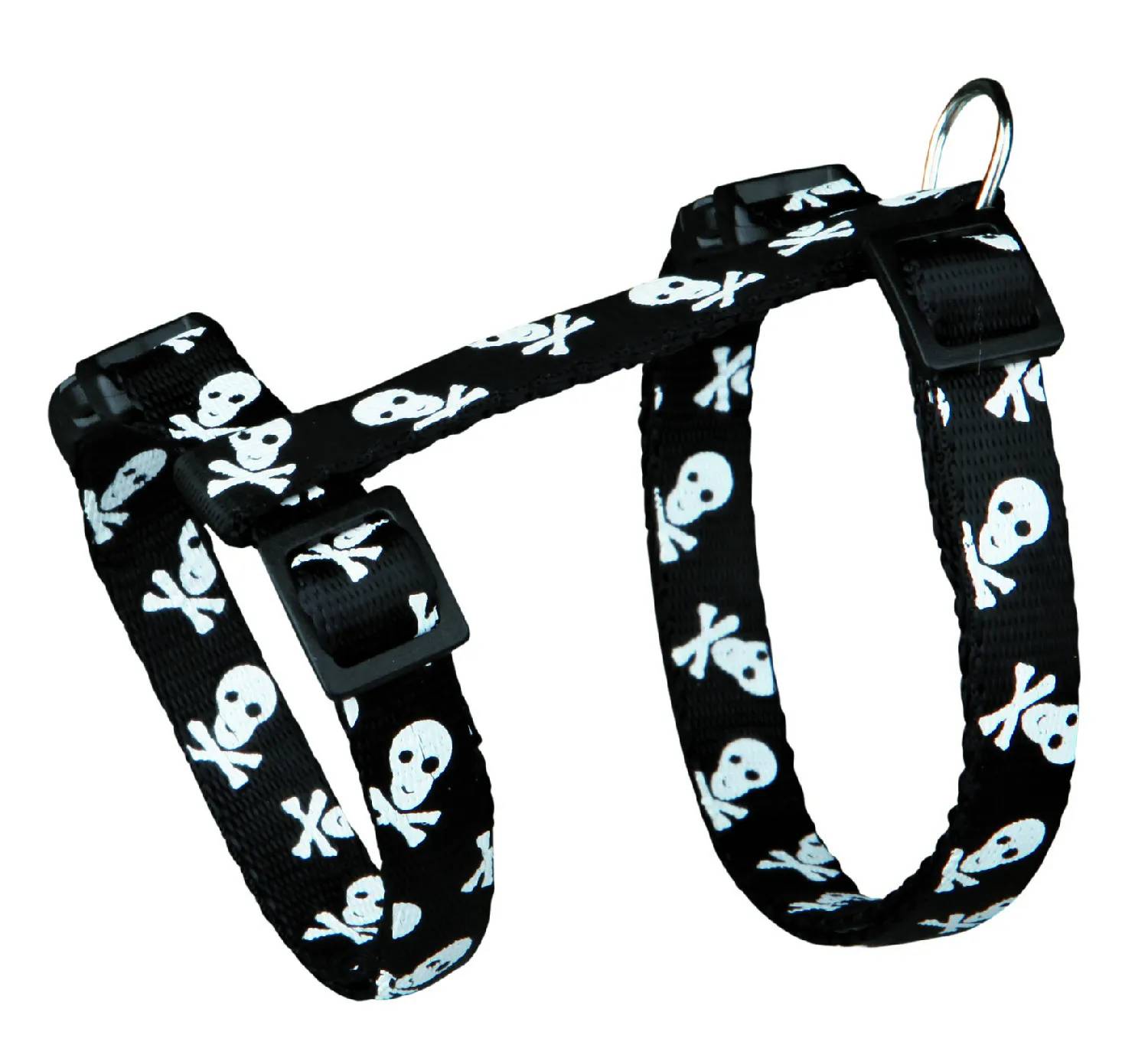 Шлейка с поводком для кошки Черепа и кости, нейлон