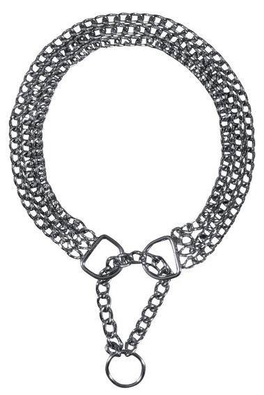 Цепь тройная с цугом ориентирована для собак крупных или бойцовских пород, обладающих развитой мускулатурой и высокой тяговой силой. Остановить такое животное на прогулке без использования дополнительных средств практически невозможно. Цепь с цугом гасит мощные рывки животного воздействуя на область шеи уверенно и мягко, не создает питомцу дискомфорта, помогает приучить к дисциплине. Выпускается в нескольких вариантах размера, который может регулироваться. Изготавливается из высокопрочной стали с хромированным напылением.
