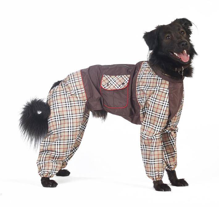 Комбинезон из плащёво-курточной водо- и ветроотталкивающей ткани, без подкладки. Предназначен для прогулок в дождливое межсезонье, в сырую грязную погоду. Производится на все породы собак.