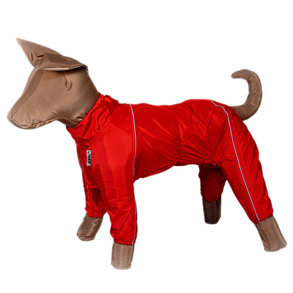 Комбинезон из плащёво-курточной водо- и ветроотталкивающей ткани, без подкладки. Предназначен для прогулок в дождливое межсезонье, в сырую грязную погоду. Производится на все породы собак.