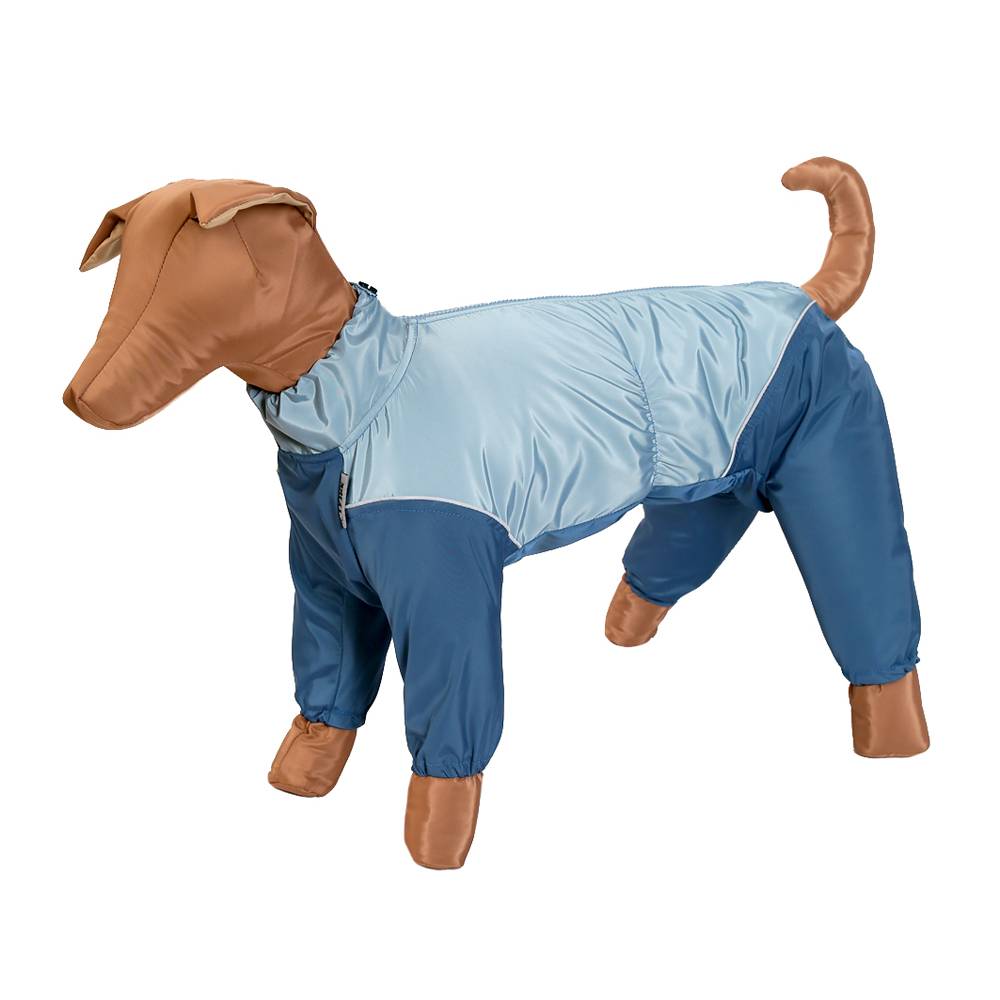 Комбинезон из плащёво-курточной водо- и ветроотталкивающей ткани, без подкладки. Предназначен для прогулок в дождливое межсезонье, в сырую грязную погоду. Производится на все породы собак.