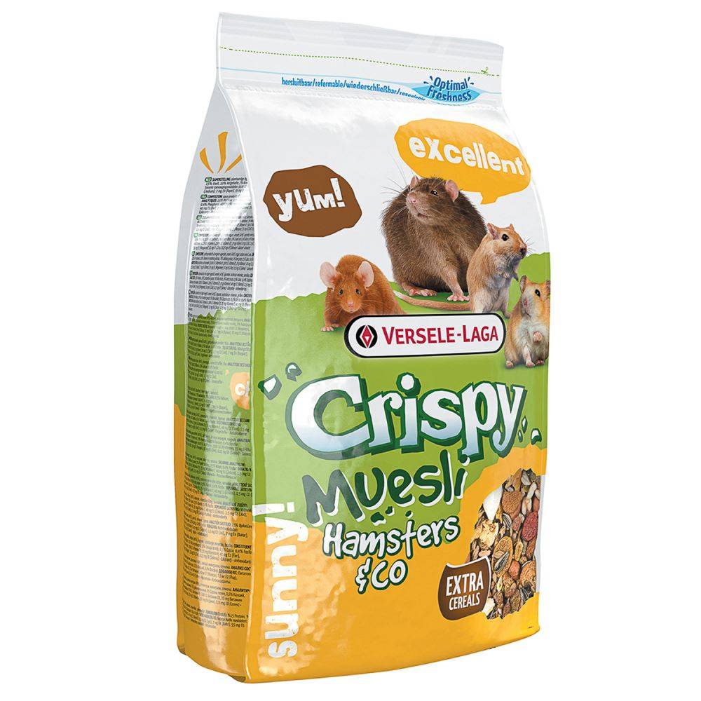 Crispy Muesli Hamsters & Co – корм для хомяков с витамином Е, включающий хрустящие мюсли, которые очень нравятся зверькам и они едят его с большим удовольсвием.