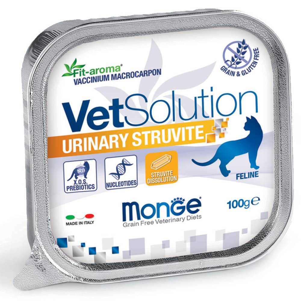 Лечебный корм Monge VetSolution Cat Urinary Struvite Уринари Струвит для кошек при заболеваниях мочеполовой системы, таких как идиопатический цистит (синдром болезненного мочевого пузыря, интерстициальный цистит) и струвитное течение мочекаменной болезни (струвитная кристаллурия и уролитиаз) 100 г.