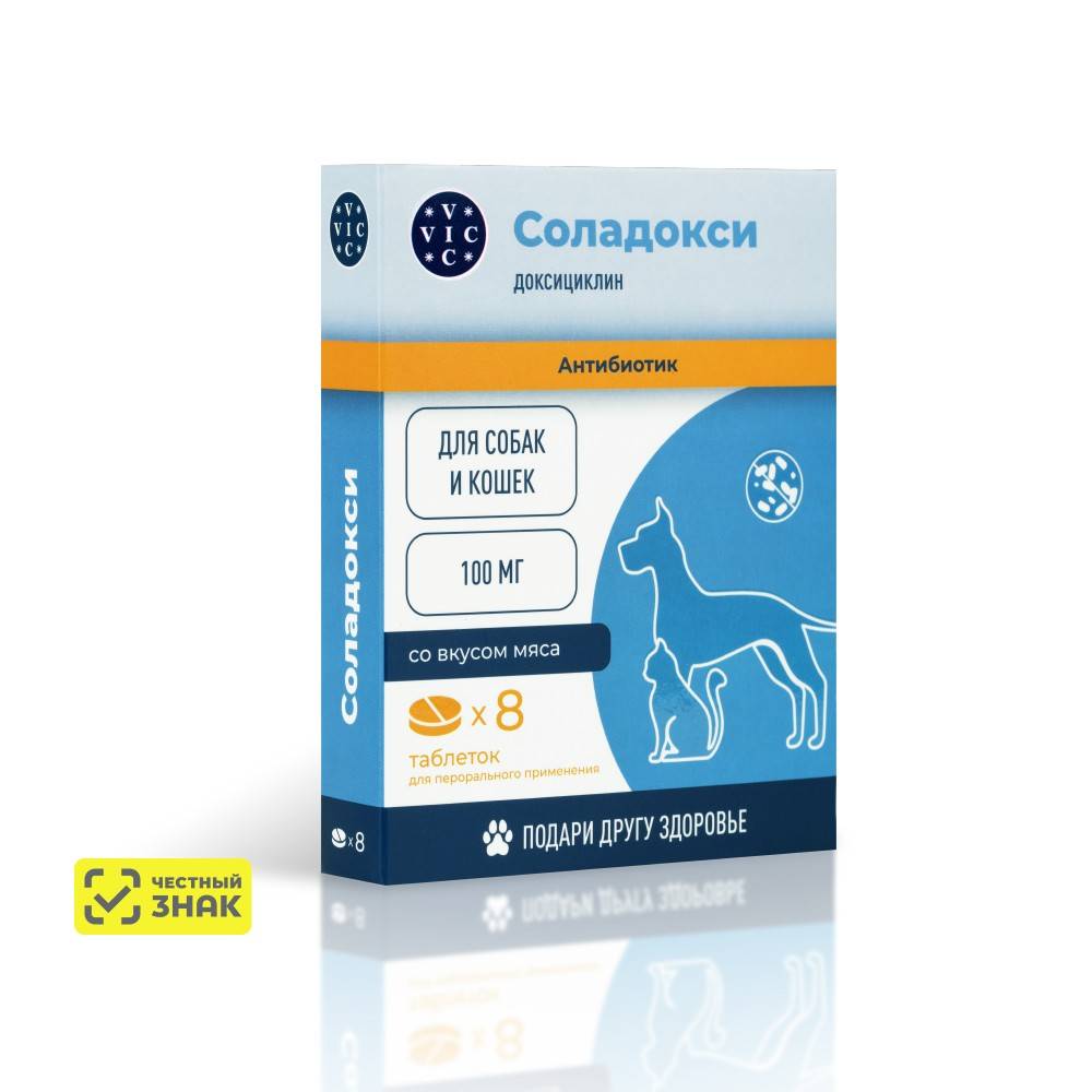 Соладокси назначают кошкам и собакам при болезнях органов дыхания (ринит, тонзиллит, бронхопневмония), мочеполовой системы (цистит, пиелонефрит, простатит, эндометрит), кожи (гнойные дерматиты, абсцессы) и других инфекциях, возбудители которых чувствительны к доксициклину.