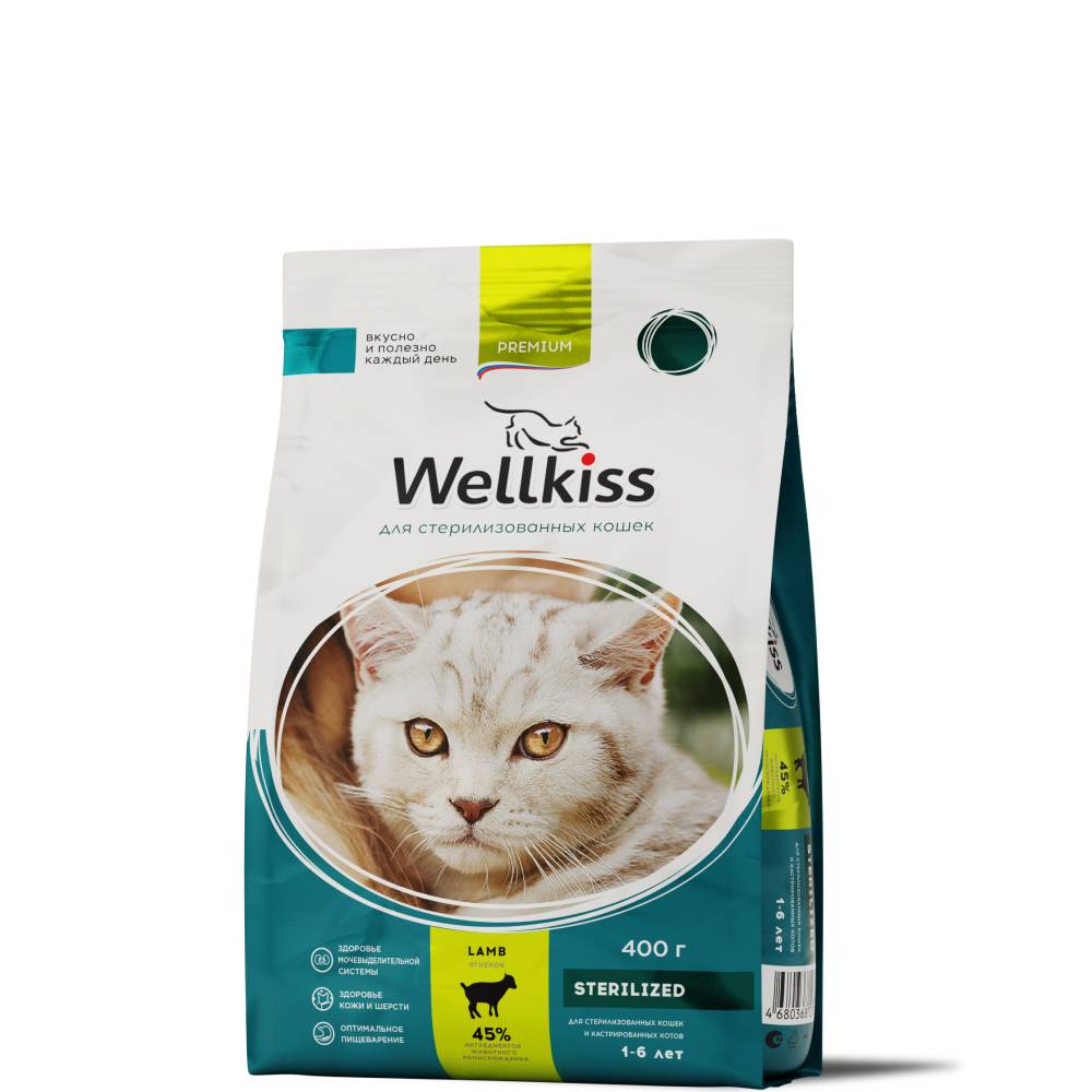 Wellkiss Sterilized корм для кастрированных и стерилизованных кошек с ягнёнком – это полноценный, сбалансированный рацион для взрослых кошек. В состав рациона входят все необходимые для здоровья кошки компоненты. Корм не содержит пшеницу, снижая таким образом риск аллергических реакций.