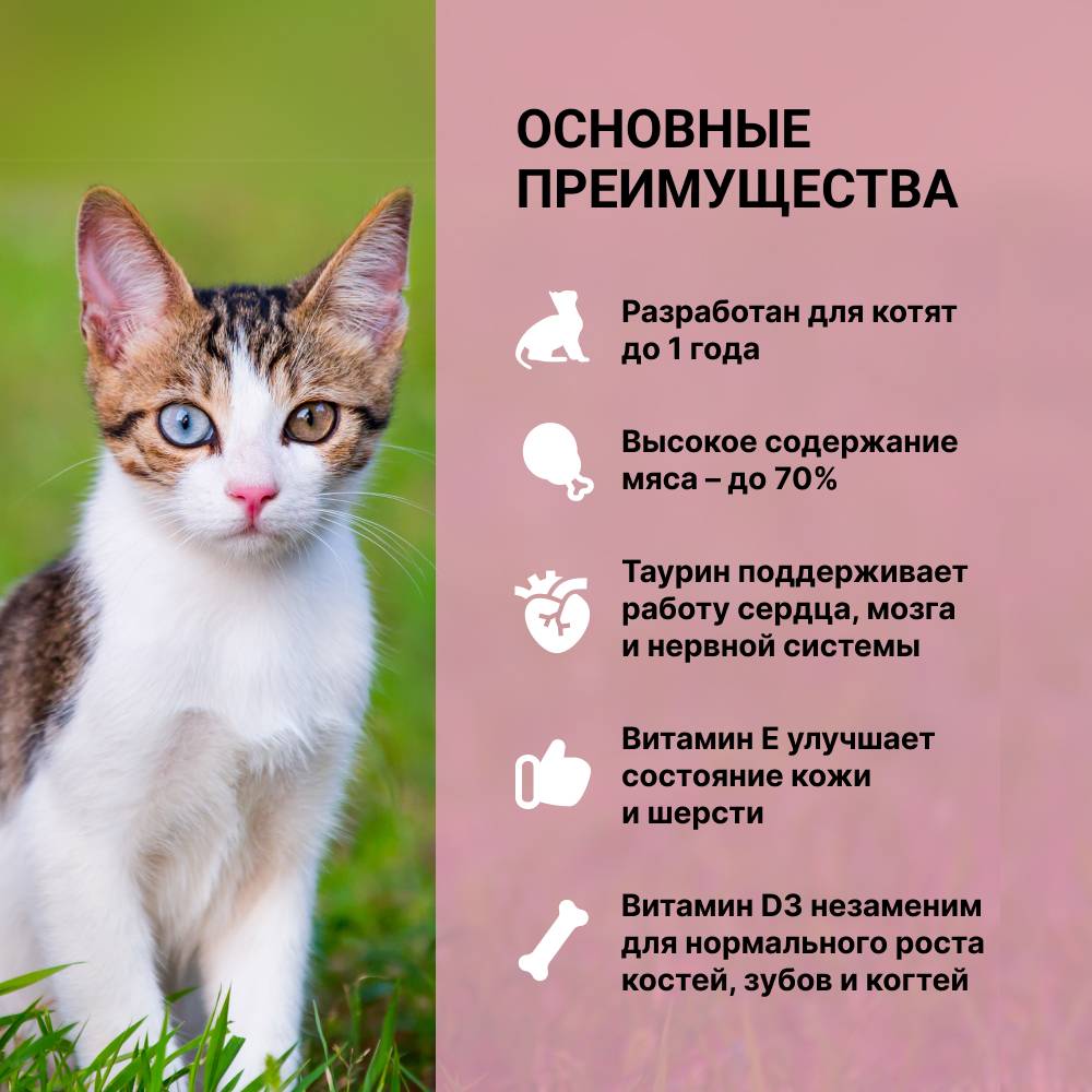 Лучший для котят по соотношению цена-качество. Двухмесячные хвосты едят с удовольствием, шерсть блестит, туалет на отлично.