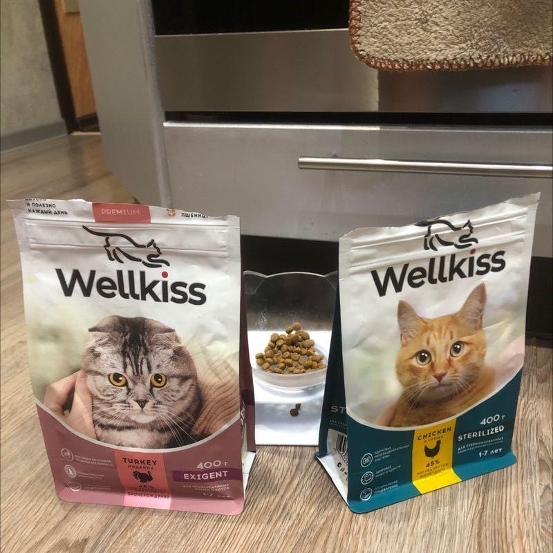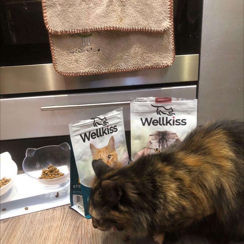 Покупаю Велкисс уже год для своих питомцев и привередливых,и не очень.их у меня 5.И очень довольна.Кошки сыты,,шерсть шелковистая,корм не закапывают.