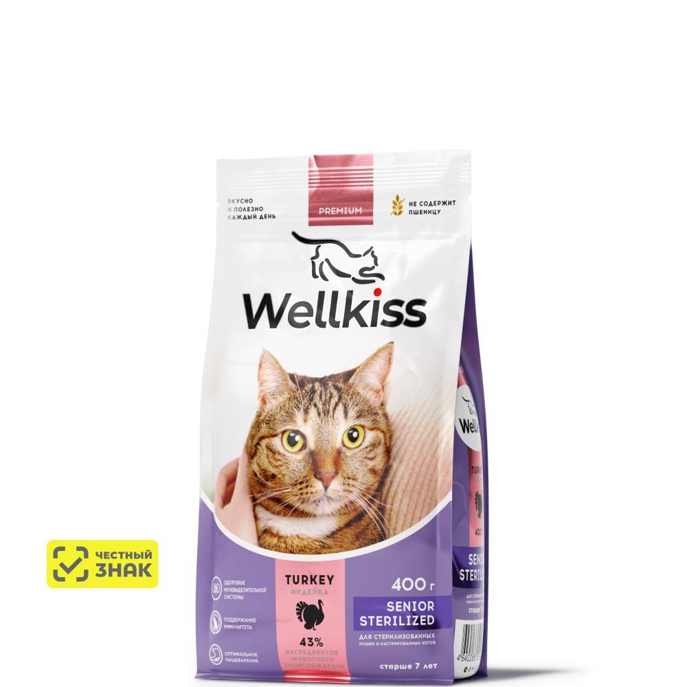 Wellkiss Senior Sterilized Сухой корм для стерилизованных кошек старше 7 лет, с индейкой, 400 гр.