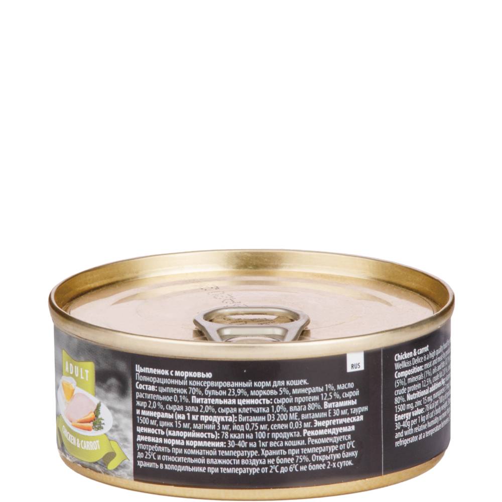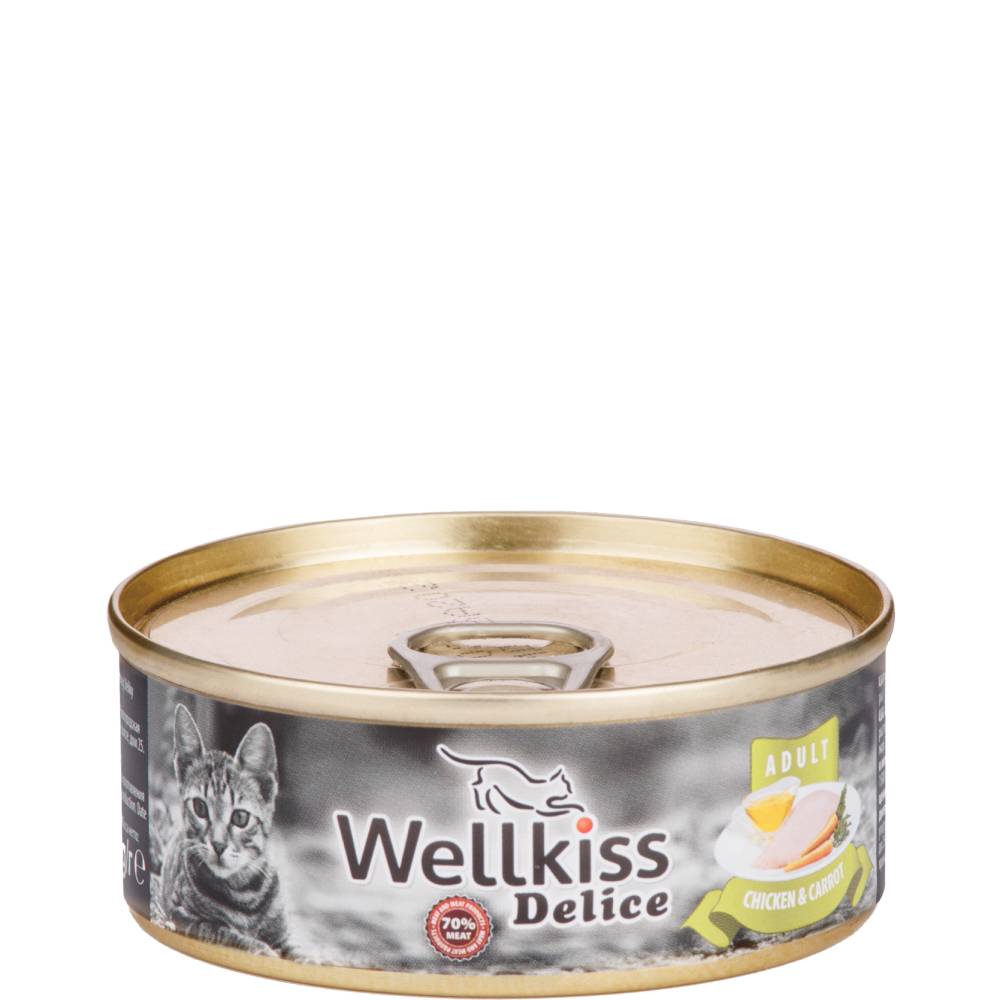 Корм для кошек Wellkiss Delice цыпленок с морковью — это полнорационный корм, произведен из свежего мяса и отборных ингредиентов. Не содержит искусственных красителей, ароматизаторов и консервантов.