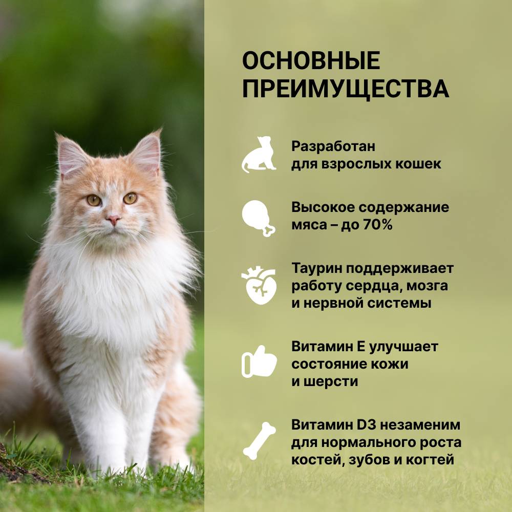 - Полноценный высококачественный сбалансированный рацион для взрослых кошек.