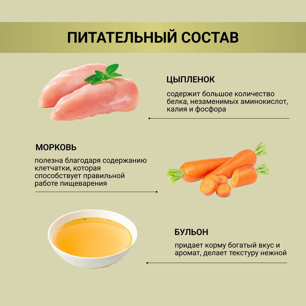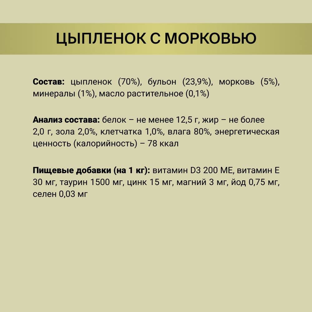 - Питательный состав корма — в рецепте до 70% мяса, все необходимые питательные вещества и витамины.