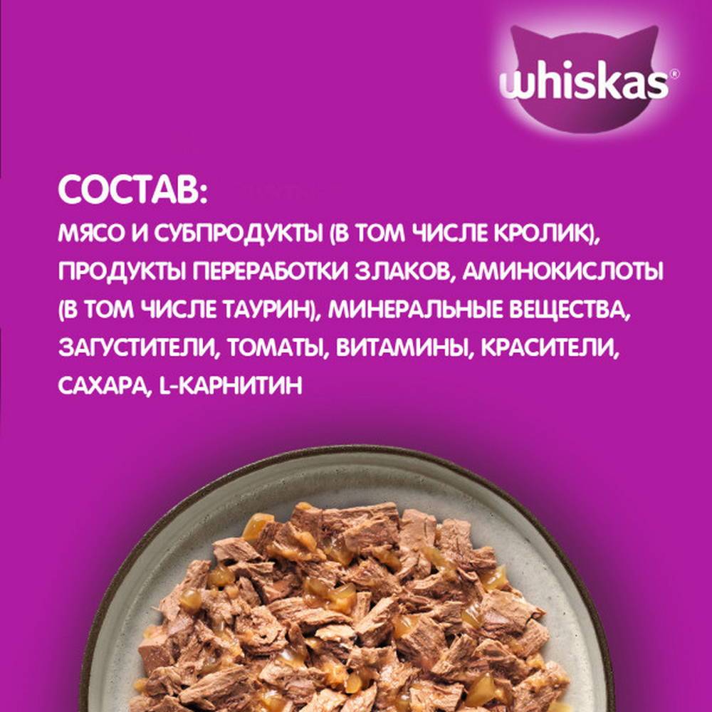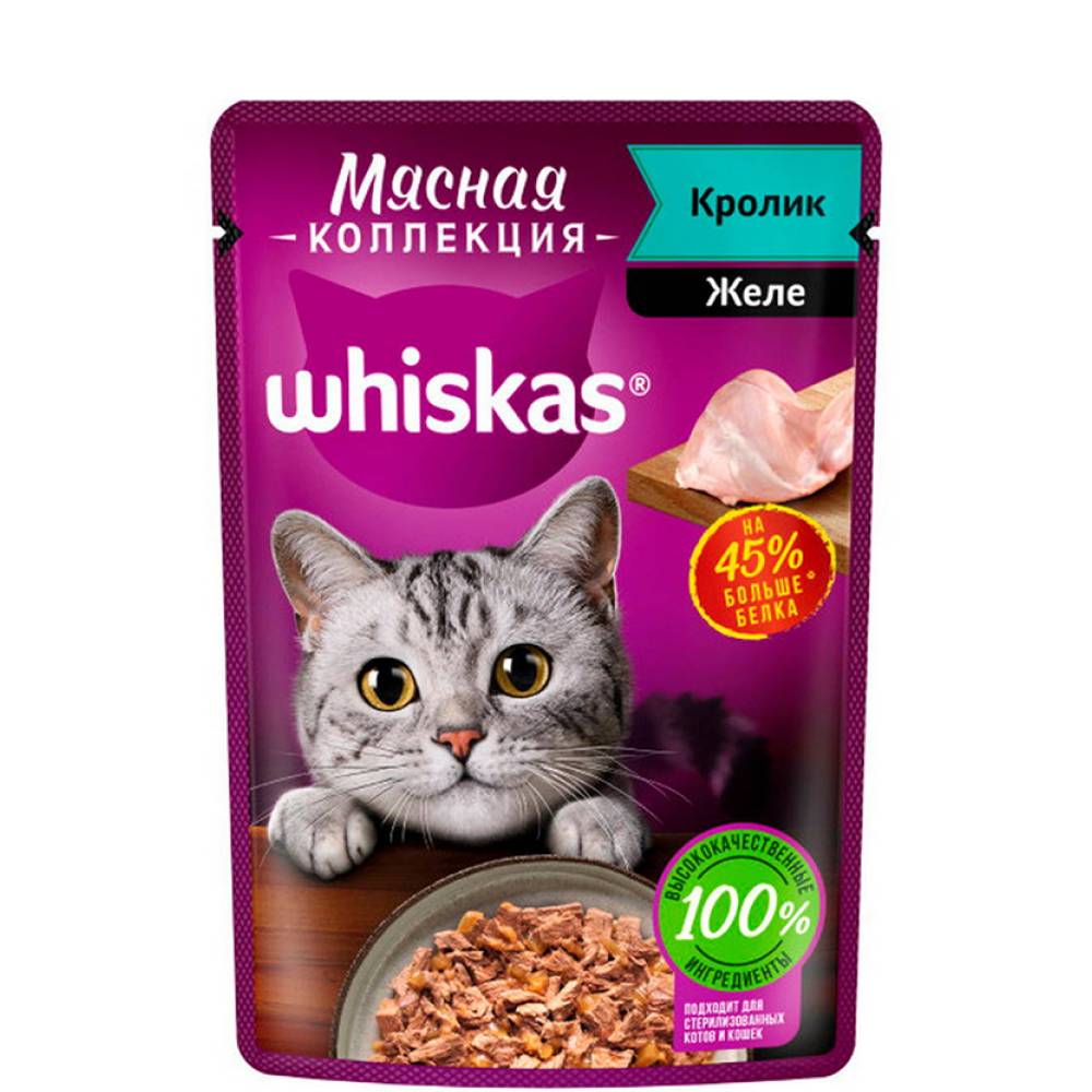 Коту 12 лет он очень избирательный в еде, поэтому приходится периодически менять корм. Решили попробовать новую мясную коллекцию Whiskas желе с кроликом.Комментарий